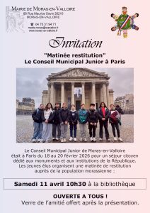 Le Conseil Municipal Junior de Moras-en-Valloire était à Paris du 18 au 20 février pour un séjour citoyen dédié aux monuments de la capitale et aux institutions de la République.